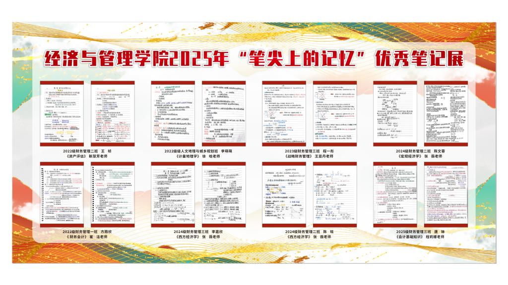为深入贯彻立德树人根本任务,扎实推进学院学风建设,引导学生养成勤于记录、善于思考、乐于总结的良好学习习惯,提升知识内化与专业应用能力,充分展现经管学子严谨笃学的精神风貌,经济与管理学院于2025年11月下旬面向学院各年级学生举办了“笔尖上的记忆”优秀笔记评选活动。
