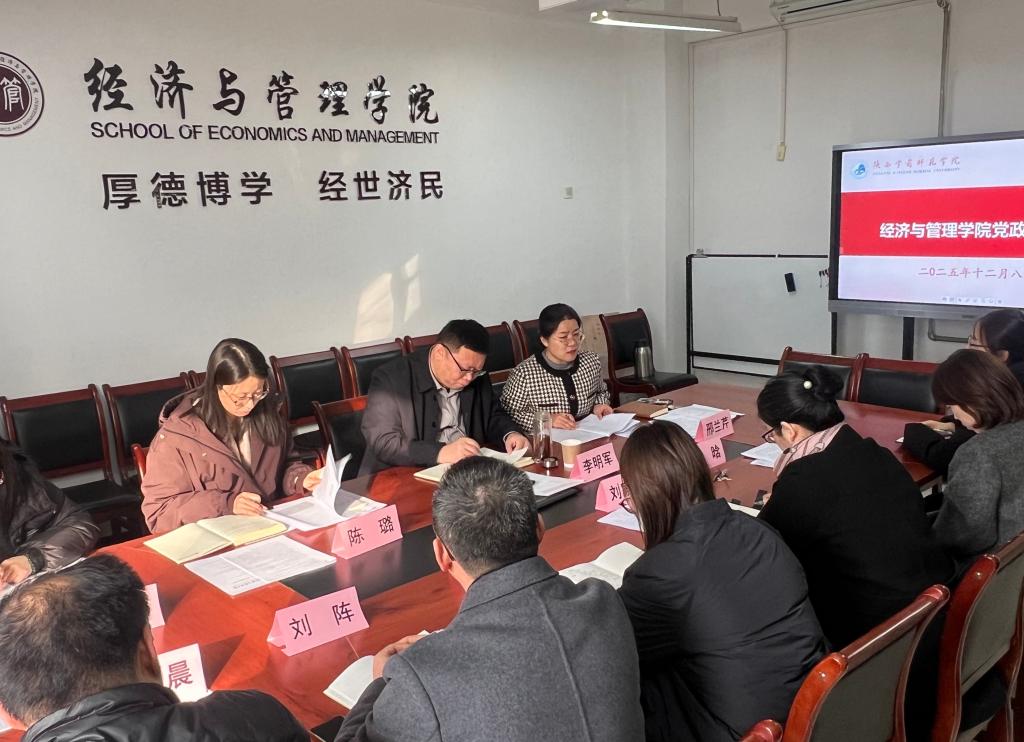 学院党委理论学习中心组学习以“深入学习贯彻党的二十届四中全会精神,凝心聚力共谋发展”为主题,重点学习了习近平总书记关于《中共中央关于制定国民经济和社会发展第十五个五年规划的建议》的说明、习近平总书记在广东考察时的重要讲话精神、中共陕西省委十四届九次全会精神、理论文章《加快建设教育强国,办好人民满意教育》《未来五年教育怎么干?》《把牢中国式现代化与新时代青年成长互动主线》等内容,副院长徐晗、副书记刘微雨围绕学习主题,结合分管工作实际,进行了交流发言。在交流研讨后,中心组学习成员集体观看了党史微纪录片《百炼成钢:中国共产党的100年——“一五”计划》。学院党政联席会议重点研究讨论了学院“十五五”规划制定思路等议题,并审议通过了《经济与管理学院关于进一步促进2026届毕业生就业工作的实施方案》。