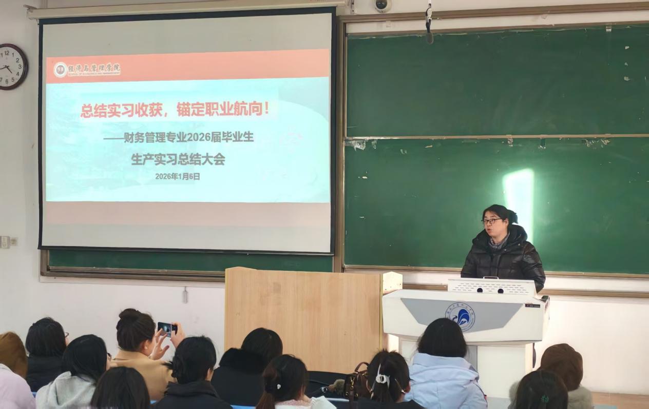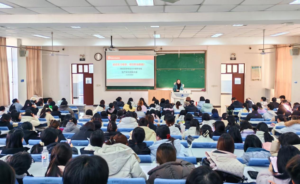 为进一步加强实践教学环节管理,总结实习实践成果,帮助学生明确职业发展方向,1月5日下午,经济管理学院在1教B3教室隆重召开财务管理专业2026届生产实习总结大会。全体实习学生、实习指导老师参加会议,会议由财务管理系主任任健华老师主持。