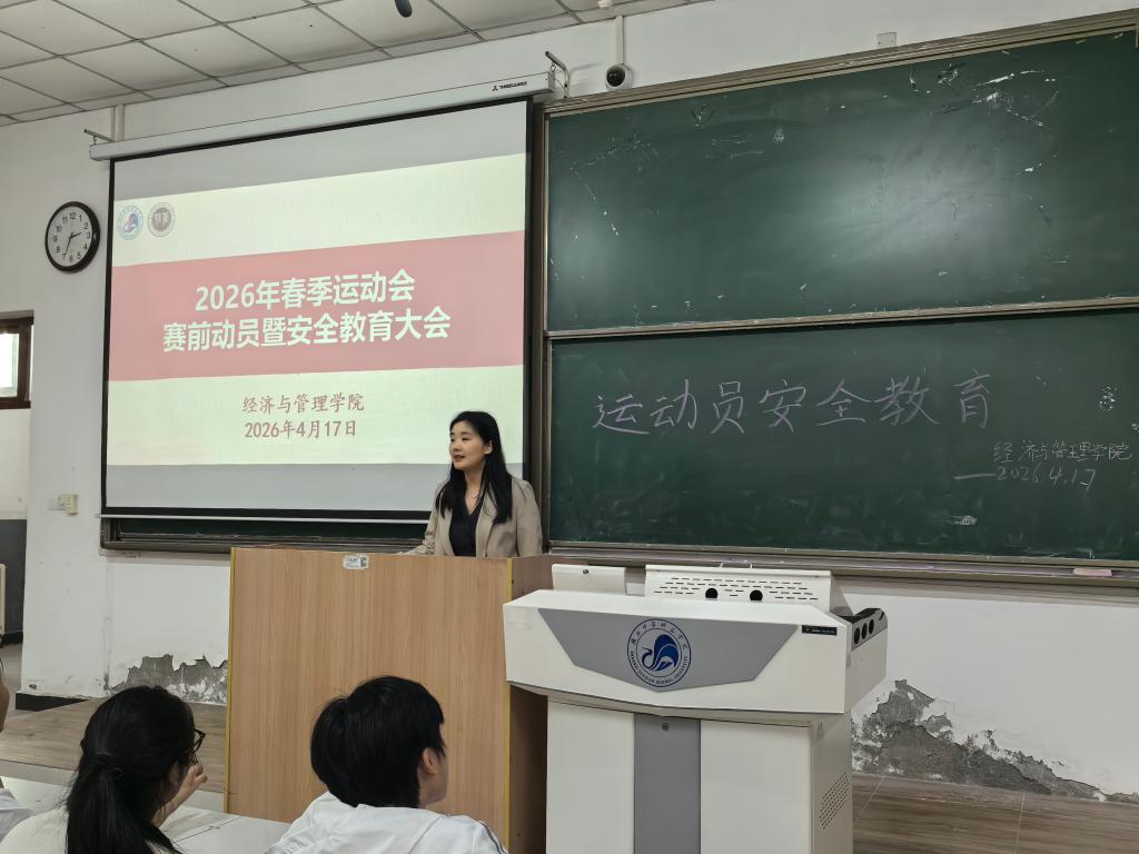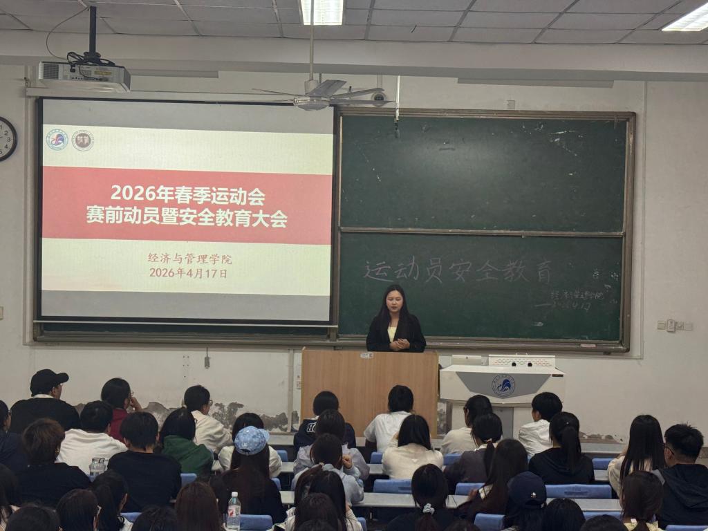 为积极备战即将到来的2026年春季运动会,激发学院运动员的参赛热情,强化赛事期间的安全责任意识,经济与管理学院于2026年4月17日召开了2026年春季运动会赛前动员暨安全教育大会。学院团总支书记肖欢、辅导员刘念念老师以及学院全体参赛运动员、部分学生骨干参加了本次会议。