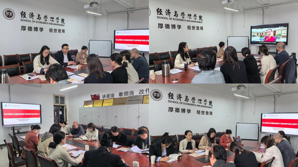 为深入学习贯彻习近平总书记关于树立和践行正确政绩观的重要论述,引导学院党员干部进一步深化对政绩观方面重大理论和实践问题的理解把握,2026年4月14日至16日,经济与管理学院党委组织全体处级干部、各党支部书记,在博文楼B411会议室开展树立和践行正确政绩观学习教育读书班分组学习。