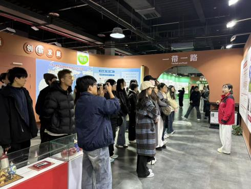 在爱粮节粮科普馆,作为全国粮食安全宣传教育基地,科普馆通过“原始农业溯源”“农耕文明演进”“一带一路粮贸发展”等七大板块,系统展现了粮食产业的发展历程与爱菊集团的责任担当。在“企业运营展示区”,师生们重点关注了爱菊集团“国内+国际”双循环的产业布局——从哈萨克斯坦优质小麦种植基地到西安加工园区,再到终端销售网络的全产业链版图,通过图文资料、数据模型清晰呈现。财务管理专业学生围绕“跨国供应链的资金调度”“海外基地的成本管控”等问题展开热烈讨论,深刻认识到粮食安全背后的财务管理逻辑。