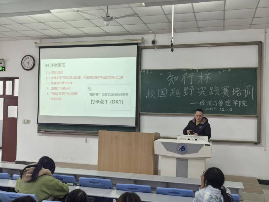 为保障赛事顺利进行,经济与管理学院于12月2日中午在博文教学楼B2教室举行了赛事专题介绍会,刘阵老师为参赛学生详细解读了比赛规则、任务内容及安全注意事项,帮助选手提前做好知识与心理准备。