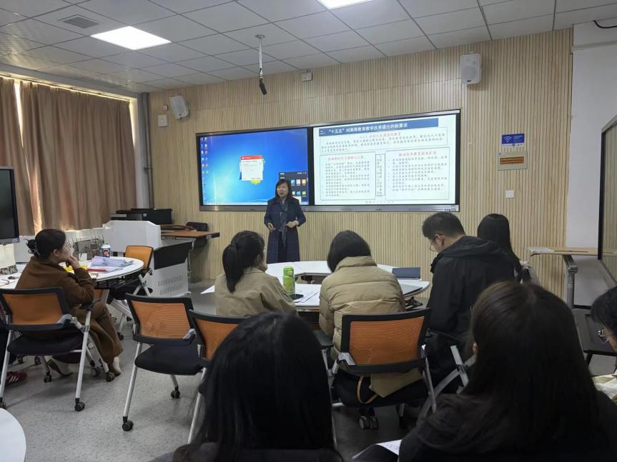 姚聪莉教授围绕教师教学研究能力提升、教改项目与课程申报、教学成果培育等核心内容展开讲解。结合“十五五”时期高等教育发展定位、教育数字化转型、新文科建设等热门主题,通过典型案例剖析、申报要点拆解、常见问题纠错等方式,为教师提供全流程实操指导。姚教授结合学院学科专业建设、人才培养质量提升、教学科研水平跃升等中心工作,帮助教师明确了将教研成果转化为育人实效的思路举措。