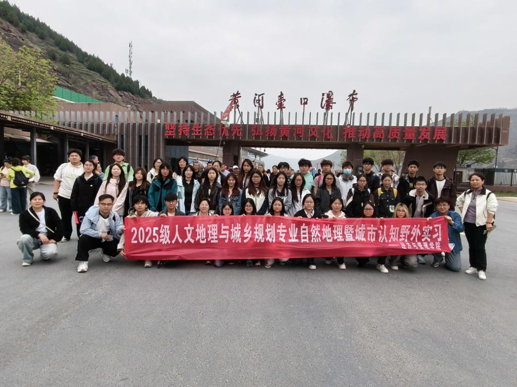 为深化专业理论认知,强化野外观测与实践能力,2026年4月13日至14日,经济与管理学院人文地理与城乡规划专业2025级40名学生在两位专业老师的带领下,赴陕西省延安市开展为期两天的自然地理野外实习考察。本次实习以“读懂黄土高原、理解人地关系”为主线,先后深入壶口瀑布、南泥湾、延安市博物馆、洛川国家黄土地质公园四处考察地点,将课堂所学的自然地理学理论知识与真实的地理环境深度融合,在黄土高原的沟壑纵横间完成了一次知行合一的学术之旅。